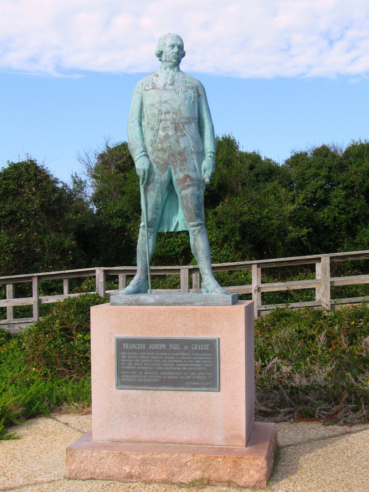 We have visited Fort Story, which has a nice pair of lighthouses to photograph, it also is the place where the Virginia colonists first landed before proceeding on to Jamestown; and a statue to the French Admiral Comte de Grasse, who provided the reinforcements that turned the tide at Yorktown for George Washington during the Revolutionary War, is also at Fort Story: